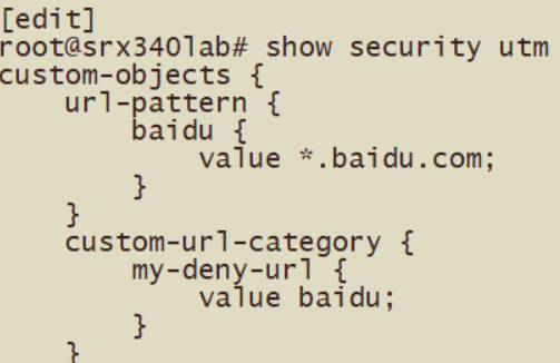 对于自定义网站的阻止,无需WEB FILTER许可即可实现,支持通配符* 无许可情况下的实现方法 通过统一策略中匹配URL元素,本例以阻止百度所有站点为例 定义URL 定义阻止提示信息 定义策略 通过以上设置,所有Baidu.com及其子域名都无法访问。
